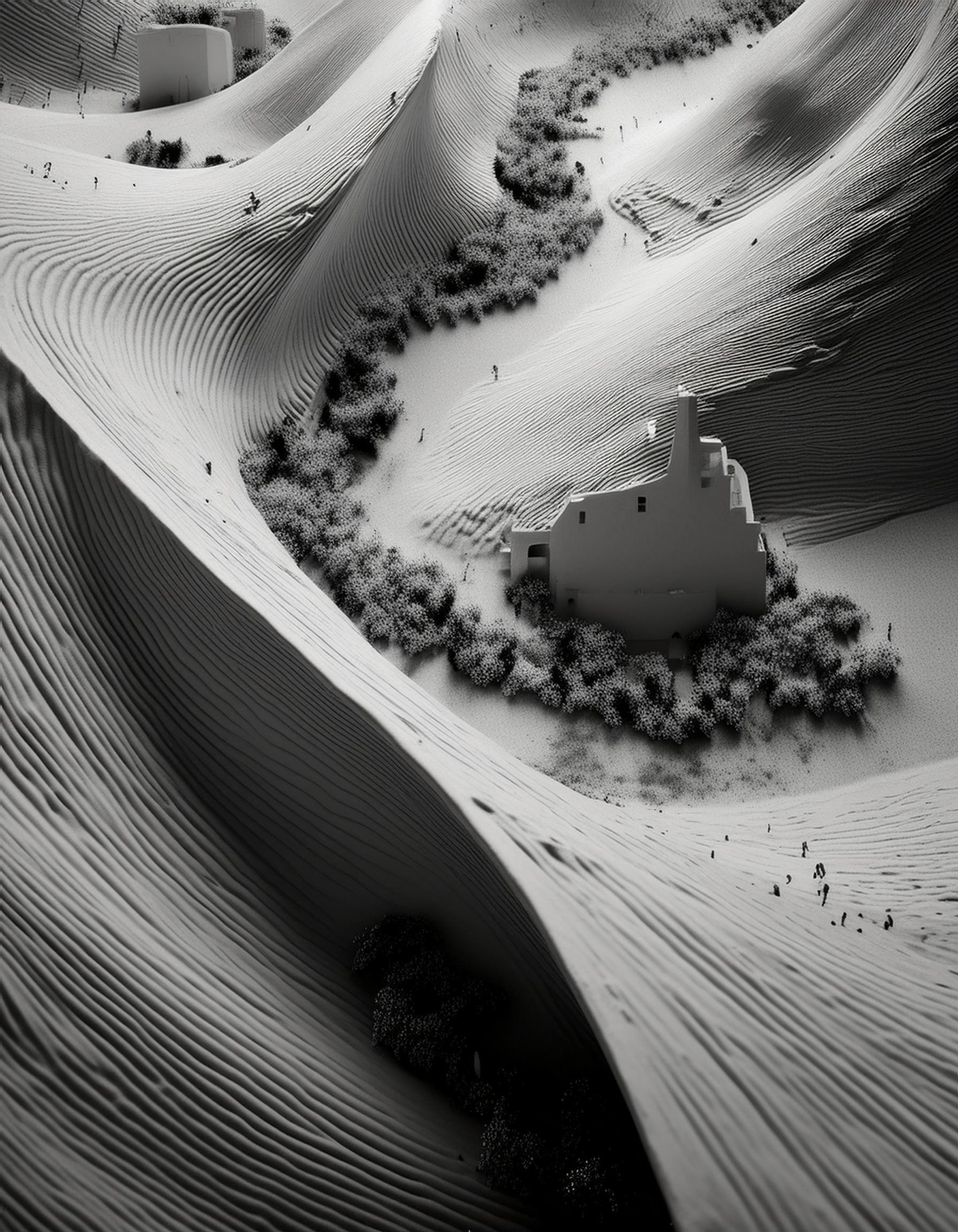 A collection of grayscale, cinematic stills that feel like frames from an abstract story.